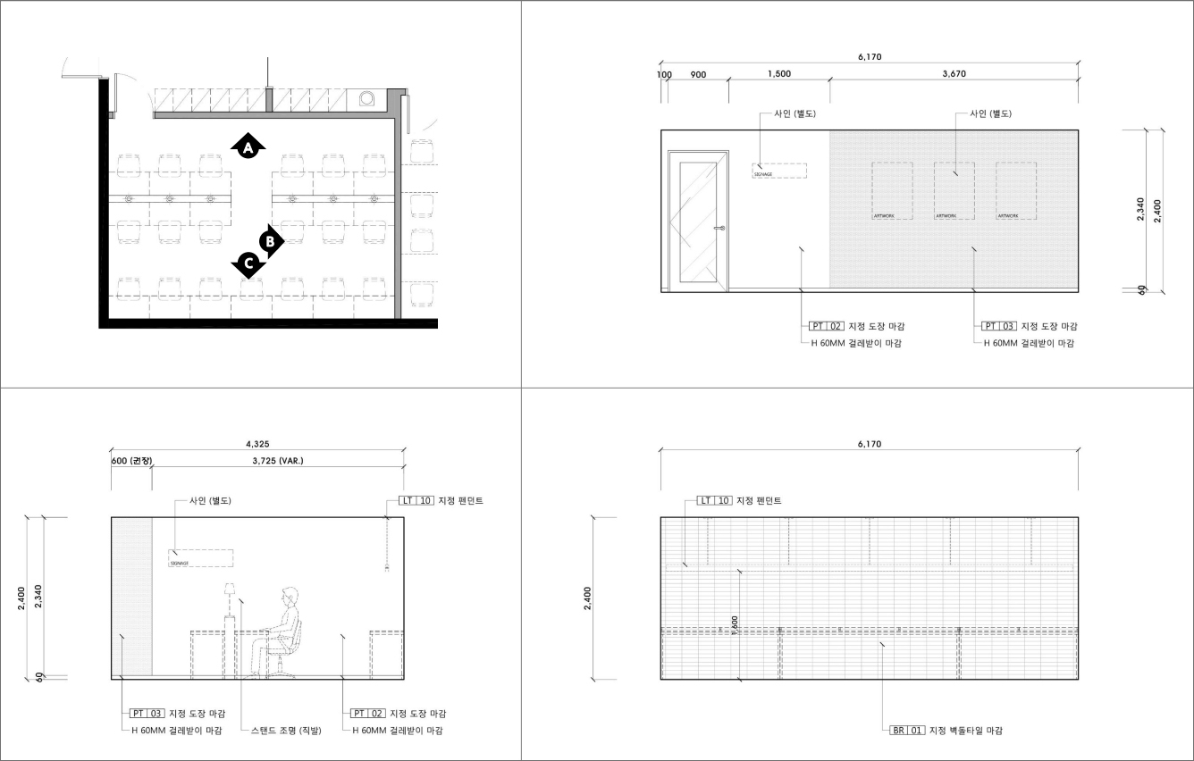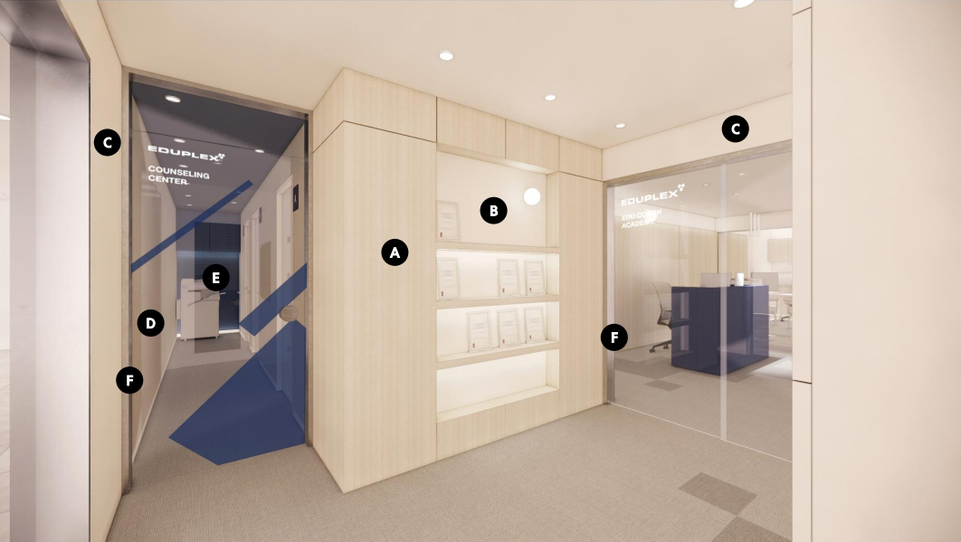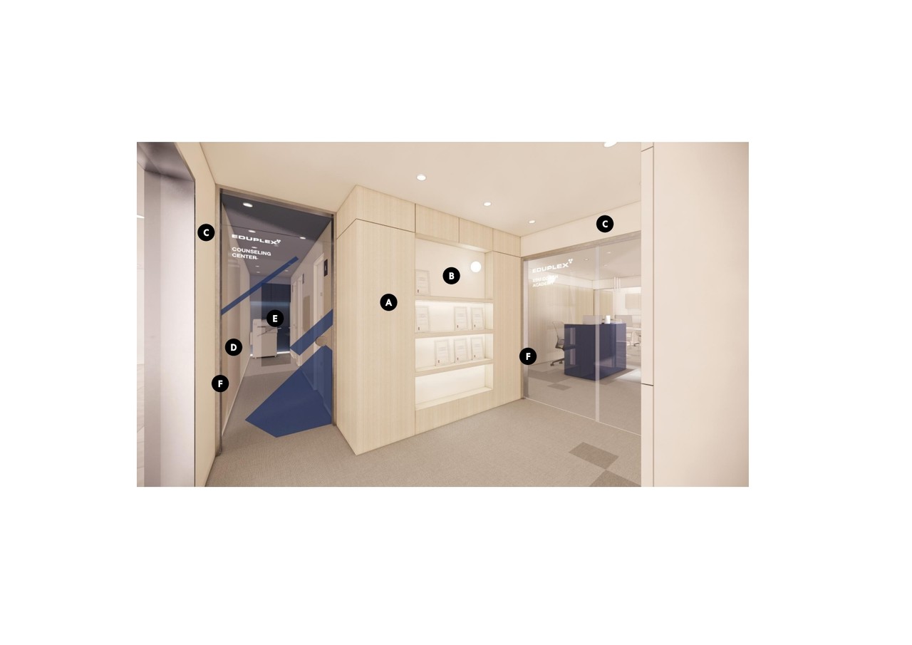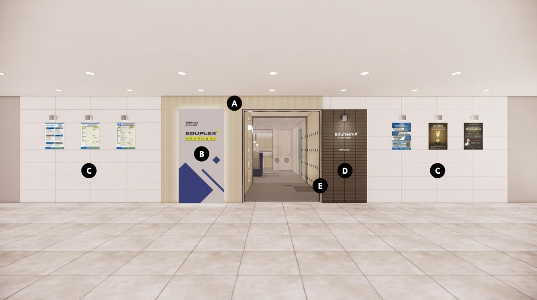1.학원 공간과 심리상담연구소, 스터디 카페 공간은 주 출입구에서 별도의 문으로 입구 분리 필요